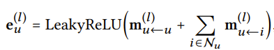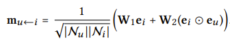 유저와 아이템 pair (u,i)에서 i로부터 u를 향한 메세지를 다음과 같이 정의합니다.