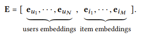 E는 사용자 임베딩 및 아이템 임베딩이 최적화되기 위한 초기 상태 역할을 합니다. 기존 MF나 neural collaborative filtering은 E를 내적을 구하기위해 아니면 interaction layer에 입력하기 위해 사용합니다. 하지만 NGCF에서는 user-item interaction graph에서 E를 전파(propagate)하여 임베딩을 개선시킵니다. 이런 방법은 임베딩에 collaborative signal를 명확히 주입하여 추천을 위한 더 효과적인 임베딩으로 개선시켜줍니다.