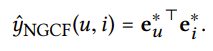 II은 concatenation operation입니다. 이러게 함으로써 여러 층의 표현들을 이용할 수 있고, 유저 u의 아이템 i에 대한 선호도를 추정하기 위해서 내적을 수행하게 됩니다.