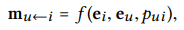 m_u←i 는 message embedding이고, f (·) 는 message encoding function입니다.